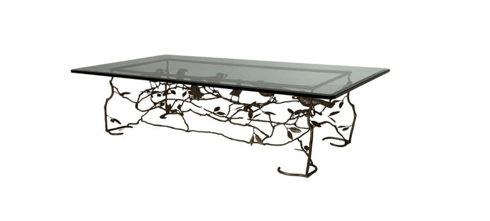 An Italian Cast Brass Cocktail Table with Bird and Branch Details