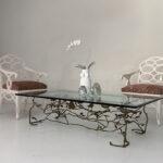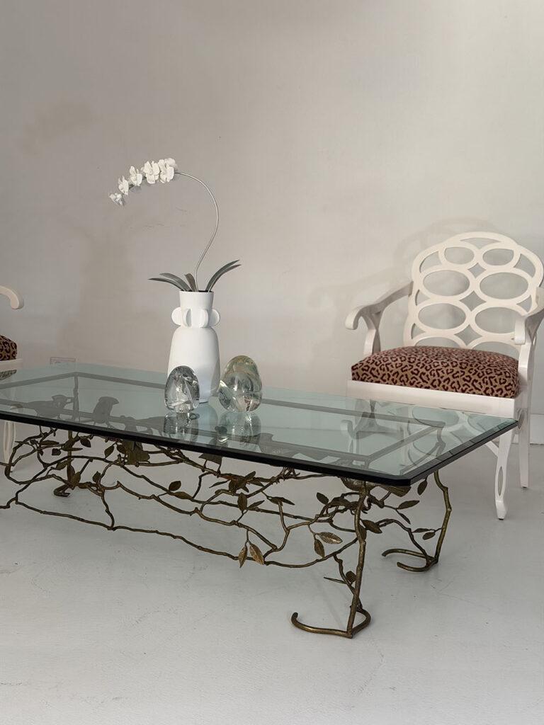 This Italian cast brass cocktail table is a striking centerpiece for any interior — equally suited to a refined Hollywood Regency or nature-inspired modern setting. Beautifully patinated brass adds warmth and texture, complementing the minimalist transparency of the glass.
