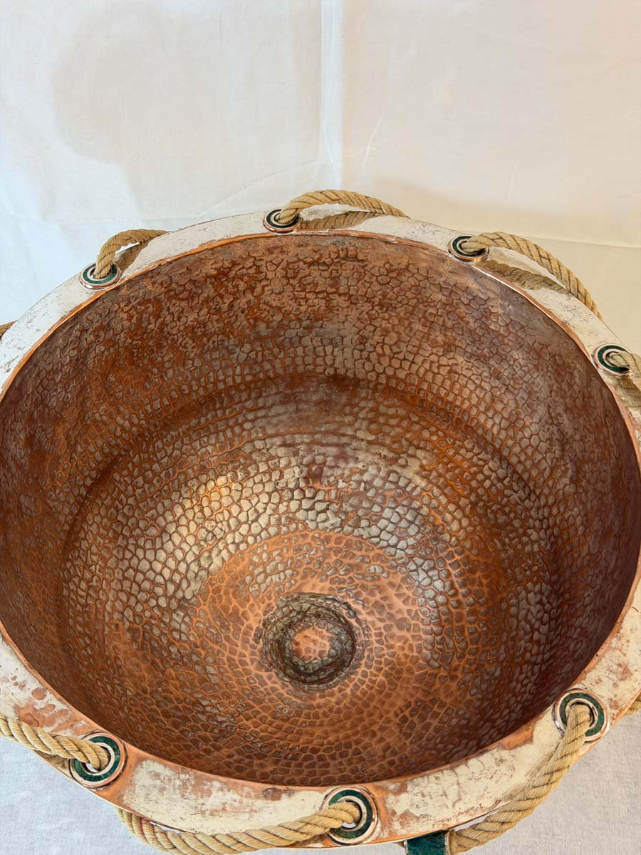 A striking and collectible example of Emilia Castillo’s luxurious Taxco metalwork, this piece blends functionality with artistry—perfect as a centerpiece, punch bowl, or sculptural statement in any refined interior.
